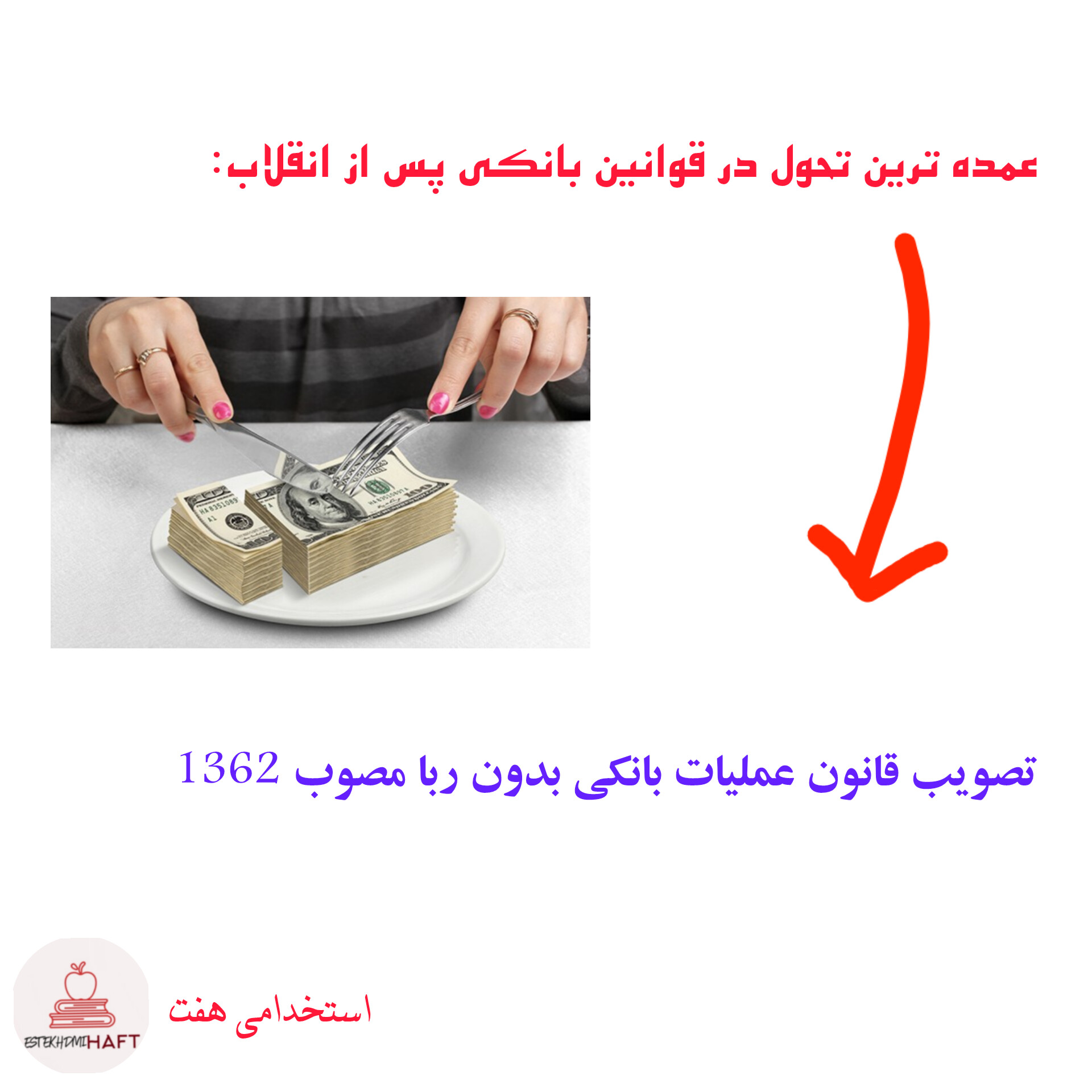 4-عمده ترین تحول در قوانین بانکی پس از انقلاب با تصویب قانون عملیات بانکی بدون ربا در 5 فصل و 27 ماده مصوب سال 1362 بوجود آمد.